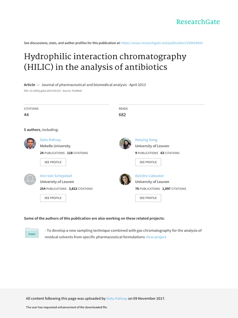 HILIC in The Analysis of Antibiotics, 2017 PDF Chromatography